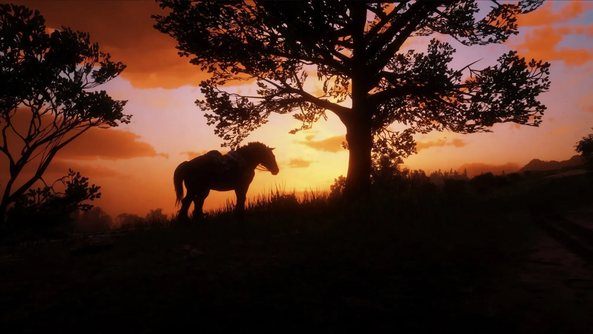 Rockstar hace algo parecido con los atardeceres. No todos, no siempre, pero sí en esos momentos fugaces y clandestinos en los que no hay misión activa ni indicador en pantalla ni voz de ningún personaje diciéndonos adónde ir. Solo uno y el mundo. Arthur sentado junto al fuego mientras el cielo se llena de estrellas. John cabalgando de vuelta al rancho con la sombra alargada por delante. Una calle de Saint Denis vacía al amanecer con el sonido lejano del Mississippi. En esos momentos, que no se pueden diseñar porque dependen enteramente de que el jugador decida quedarse quieto y mirar (quizá la decisión más difícil y más hermosa que puede tomar un jugador en un medio obsesionado con la acción), Rockstar deja de ser un estudio de videojuegos y se convierte en lo que siempre ha querido ser: un constructor de lugares donde merece la pena estar.